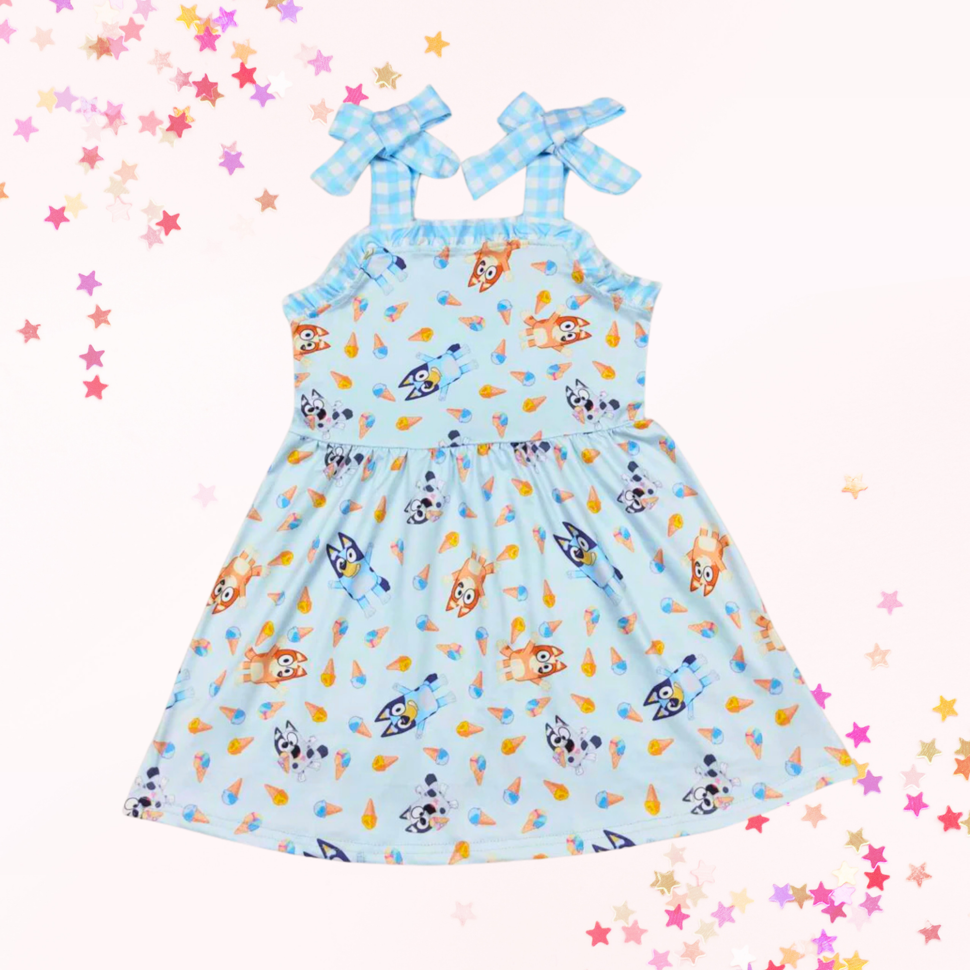 Made for twirling, exploring, and every sunny day in between! This adorable girls' dress is crafted from a soft and breathable cotton-spandex blend that keeps her cool and comfy all day long. The flowy skirt and sweet bow accents add a touch of charm she’ll love.